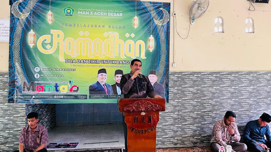 Kepala Kantor Kementerian Agama Kabupaten Aceh Besar, H. Saifuddin, S.E., secara resmi membuka kegiatan Pembelajaran Bulan Ramadhan di MAN 3 Aceh Besar. Kamis, 6 Maret 2025. Acara yang berlangsung di mushalla madrasah ini turut diisi dengan Doa dan Zikir untuk Bangsa, sebagai wujud penguatan spiritual siswa selama bulan suci. Kegiatan ini akan berlangsung dari 6 […]
