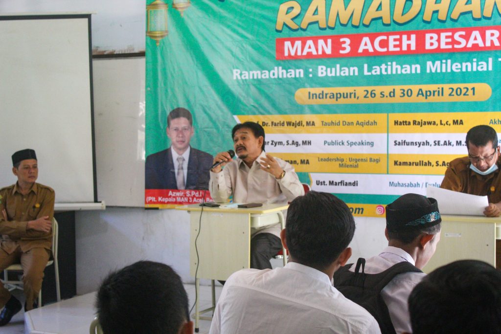 Indrapuri – Kakankemenag Aceh Besar H. Abrar Zym, S.Ag, MH memberikan materi public speaking untuk siswa-siswi MAN 3 Aceh Besar pada selasa siang (27/04/2021). Kegiatan tersebut masih dalam rangka pesantren kilat Ramadhan 2021 MAN 3 Aceh Besar. Kakankemenag Aceh Besar menekankan pentingnya siswa-siswi dapat tampil di depan dengan penuh percaya diri. Jangan sampai rasa malu […]