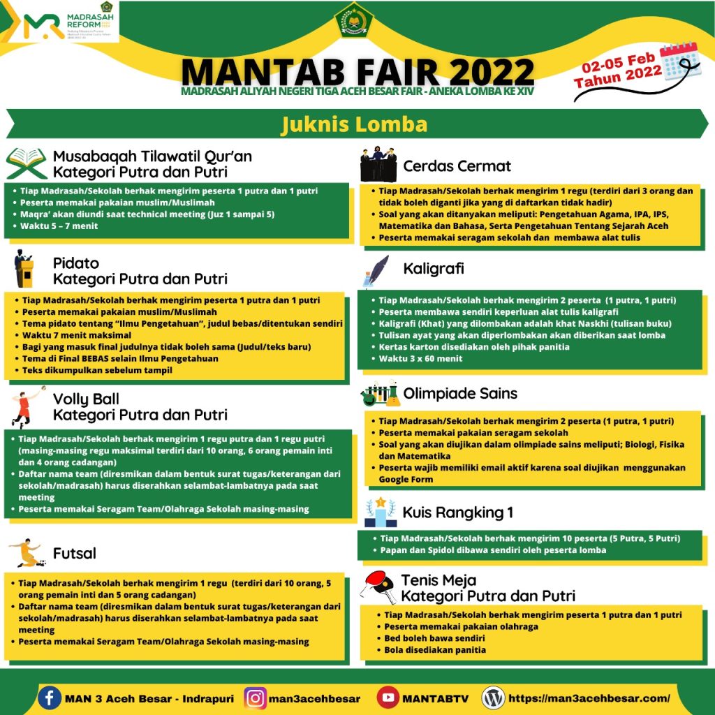 MAN 3 Aceh Besar dalam waktu dekat ini akan melaksanakan kegiatan MANTAB Fair Ke-14 Tahun 2022.