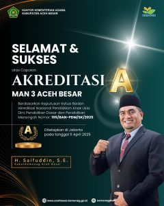 Dengan raihan akreditasi A ini, MAN 3 Aceh Besar semakin mantap melangkah sebagai lembaga pendidikan unggulan yang berkarakter, profesional, dan siap menjawab tantangan zaman.